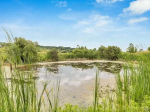 Step outside, and the land itself tells its story. The property stretches over rolling pastures, wooded trails, and winding creek beds that invite long walks and quiet exploration. A shimmering pond reflects the sky in every season—sometimes glassy and still, sometimes alive with birds and the ripple of fish breaking the surface. The combination of open fields and dense woods makes this property a true haven for wildlife. Deer wander through at dawn, wild turkeys cross the meadows, and the trees hum with the songs of native birds. It’s not just a piece of land—it’s an ecosystem thriving in balance, a living landscape that changes subtly with every hour and season.
