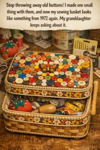 If you grew up in the 60s or 70s, you probably remember it clearly. A metal cookie tin or small plastic container tucked into a sewing basket. Inside were hundreds of buttons—different shapes, different colors, different sizes. Some still attached to scraps of thread. Some saved from shirts long gone. Some mismatched, waiting for a purpose that might never come.