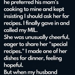 My Husband Always Compared My Cooking to His Mother’s and Pushed Me to Learn Her Recipes, but When I Finally Did and Served Him Her “Perfect” Dish, His Reaction Exposed a Truth That Changed How I Saw My Marriage, My Confidence, and the Silent Competition I Never Realized I Was Living In