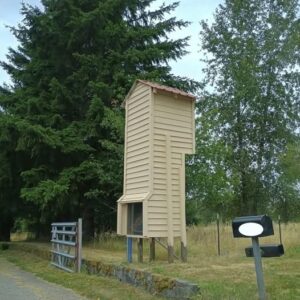 We keep spotting this thing by the side of the road here in Oregon. It sits right at the end of a driveway, with the glass part facing toward it. It’s around 15 feet tall and looks totally empty inside. My wife’s going crazy trying to figure out what it is every time we pass it. Could it be a birdhouse? A deer feeder? Maybe some kind of watchtower?