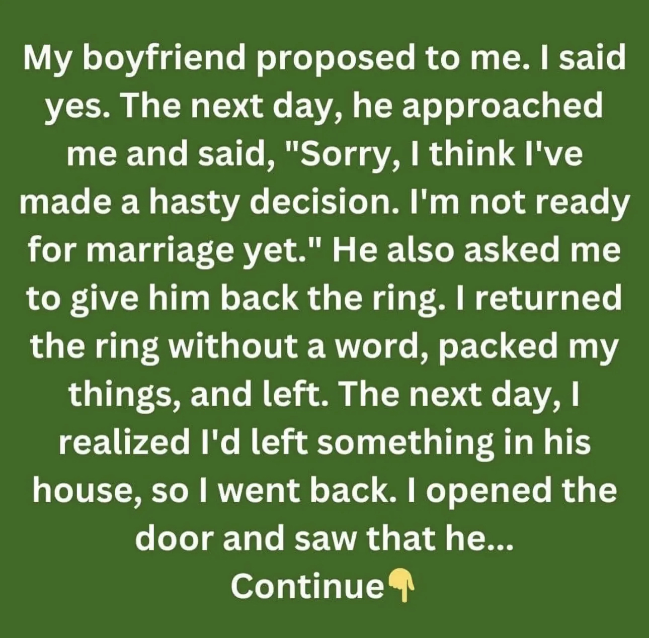 My boyfriend proposed to me. I was over the moon and said yes. The next day, he approached me and said, “Sorry, I think I’ve made a…