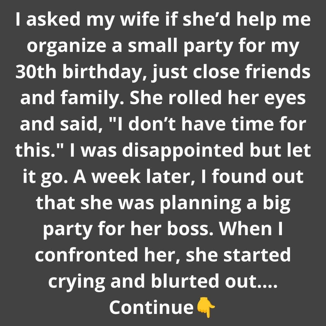I asked my wife, Sarah (29F), to help organize a small 30th birthday party for me—just close friends and family. She dismissed me, saying, “I’m not your…