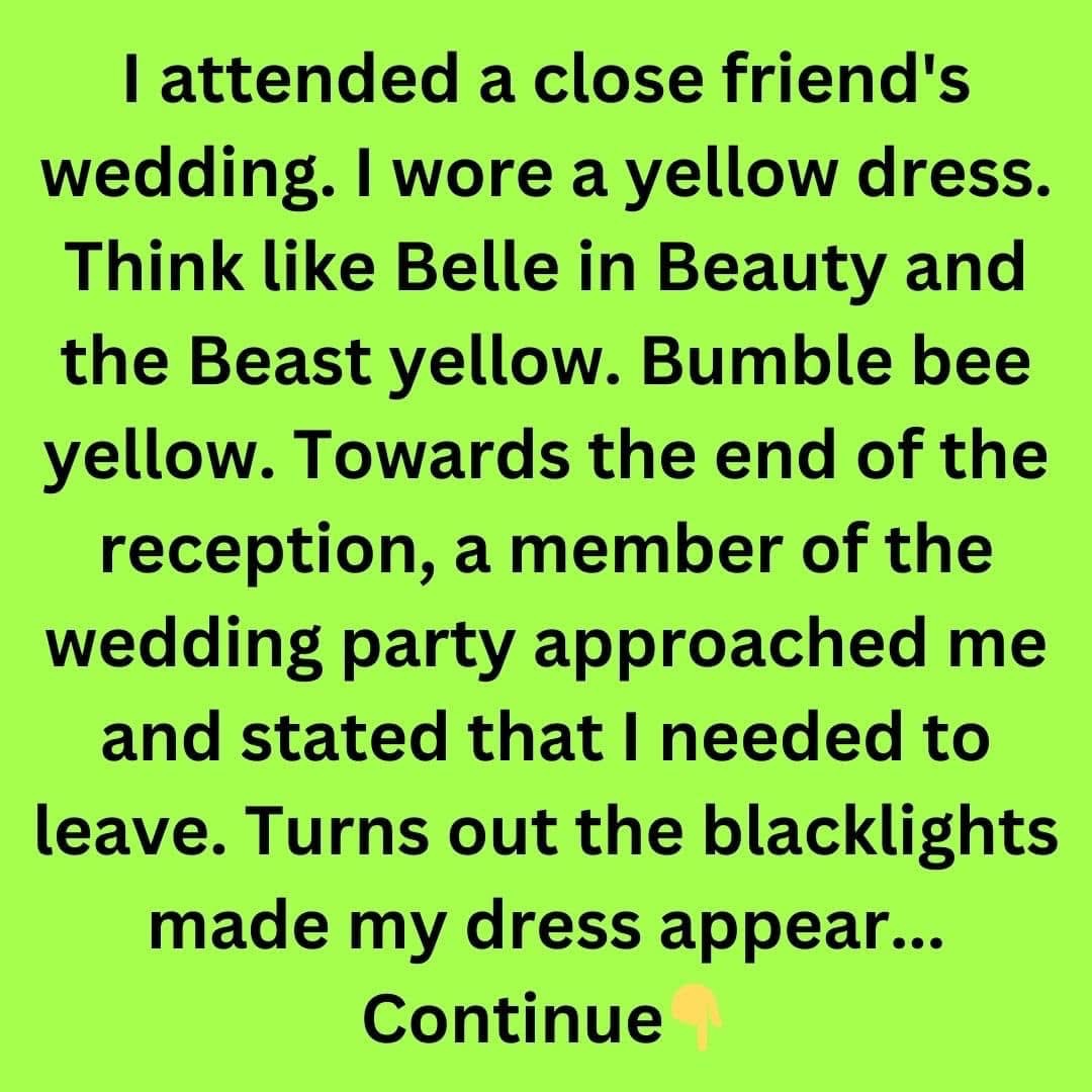I attended a close friend’s wedding. I wore a yellow dress. Think like Belle in Beauty and the Beast yellow. Bumble bee yellow. Towards the end of…