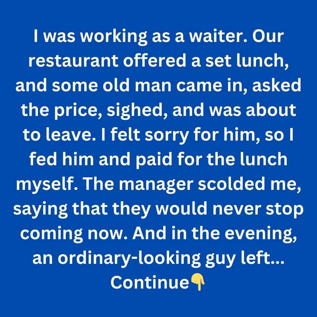 About 10 years ago, I was working as a waiter. Our restaurant offered a set lunch, and some old man came in, asked the price, sighed, and…