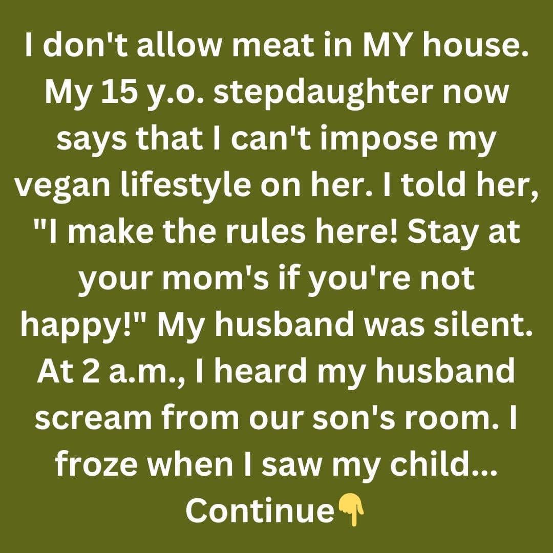 I don’t allow meat in my house, and my 15-year-old stepdaughter says I can’t impose my vegan lifestyle on her. I told her, ‘I make the rules…