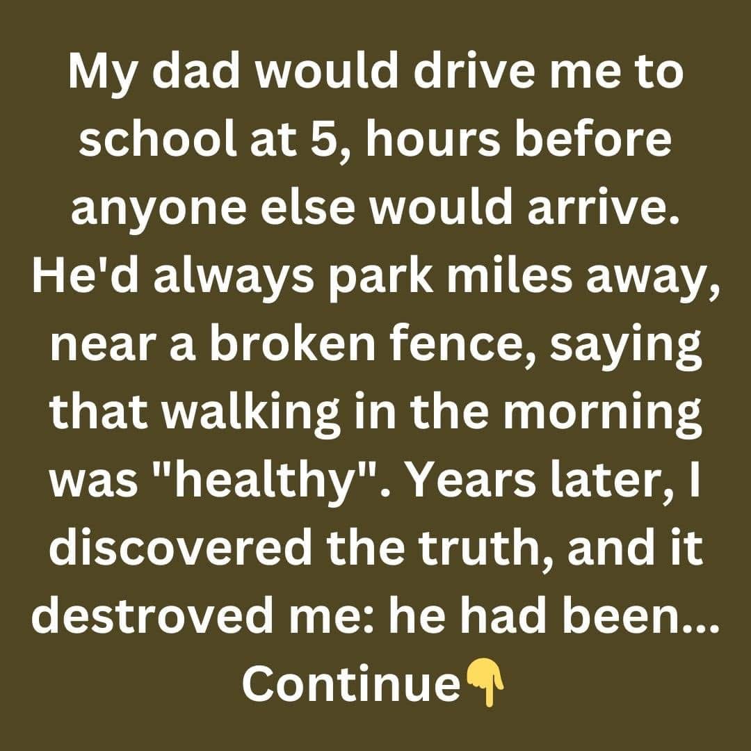 My dad would drive me to school at 5:00 a.m. hours before anyone else would arrive. He’d always park miles away at the edge of the school…