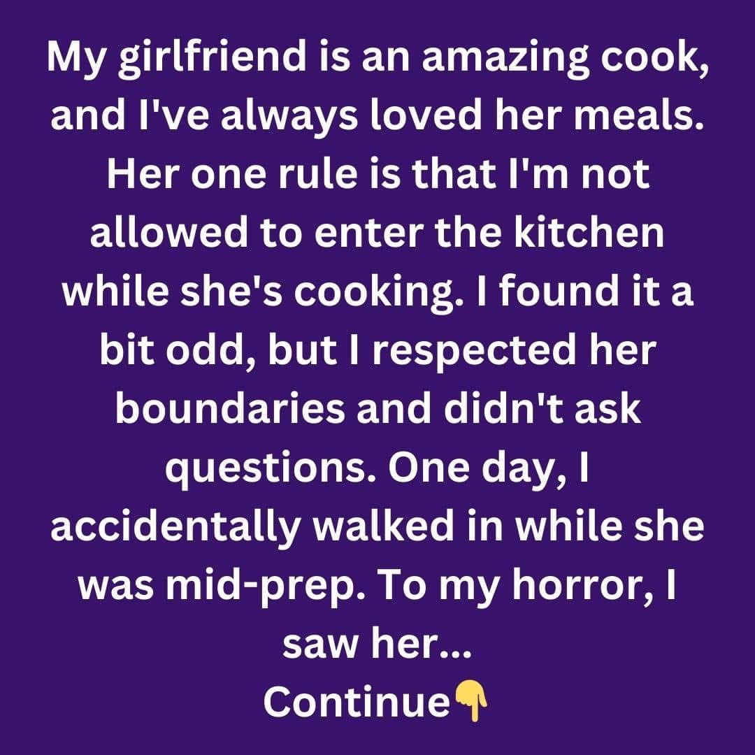 My girlfriend is an amazing cook, and I’ve always loved her meals. Her one rule is that I’m not allowed to enter the kitchen while she’s cooking….