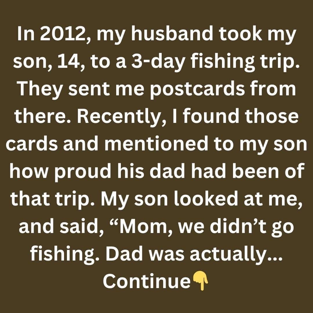 In 2012, my husband took my 14-year-old son on a 3-day fishing trip. They sent me postcards from there. Recently, I found those cards and mentioned to…