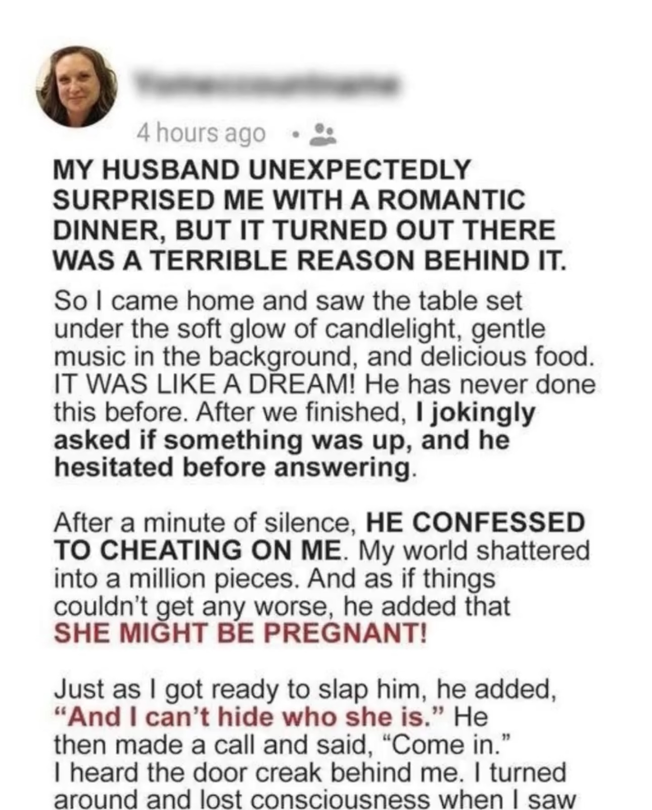 My husband unexpectedly surprised me with a romantic dinner, but there was a terrible reason behind it