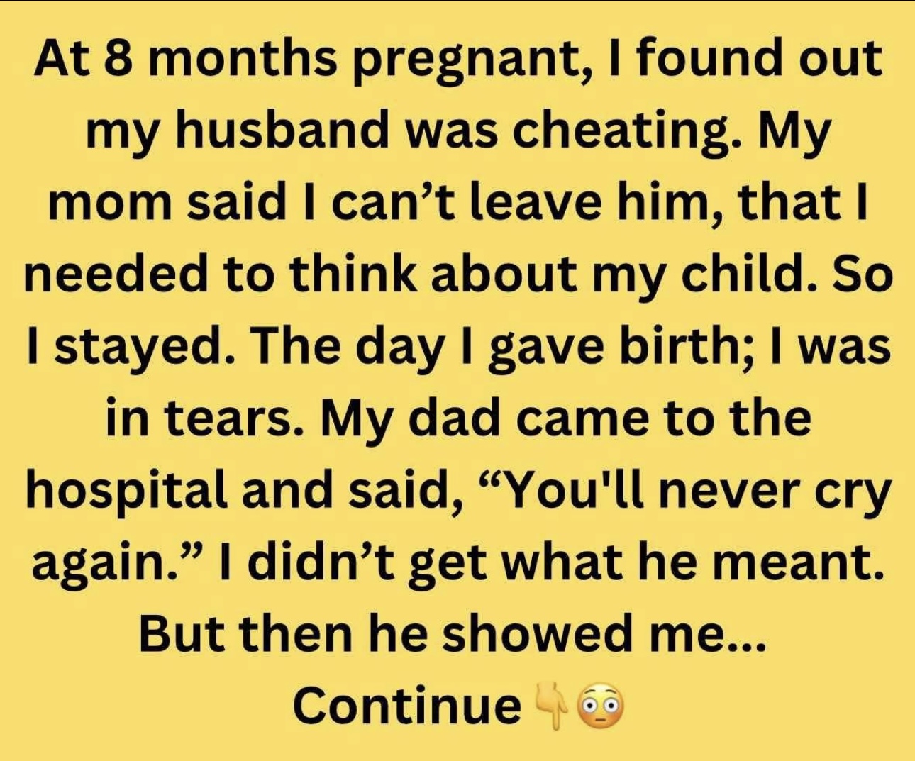 At 8 months pregnant, I found out my husband was cheating. My mom said I can’t leave him—that I needed to think about my child. So I…