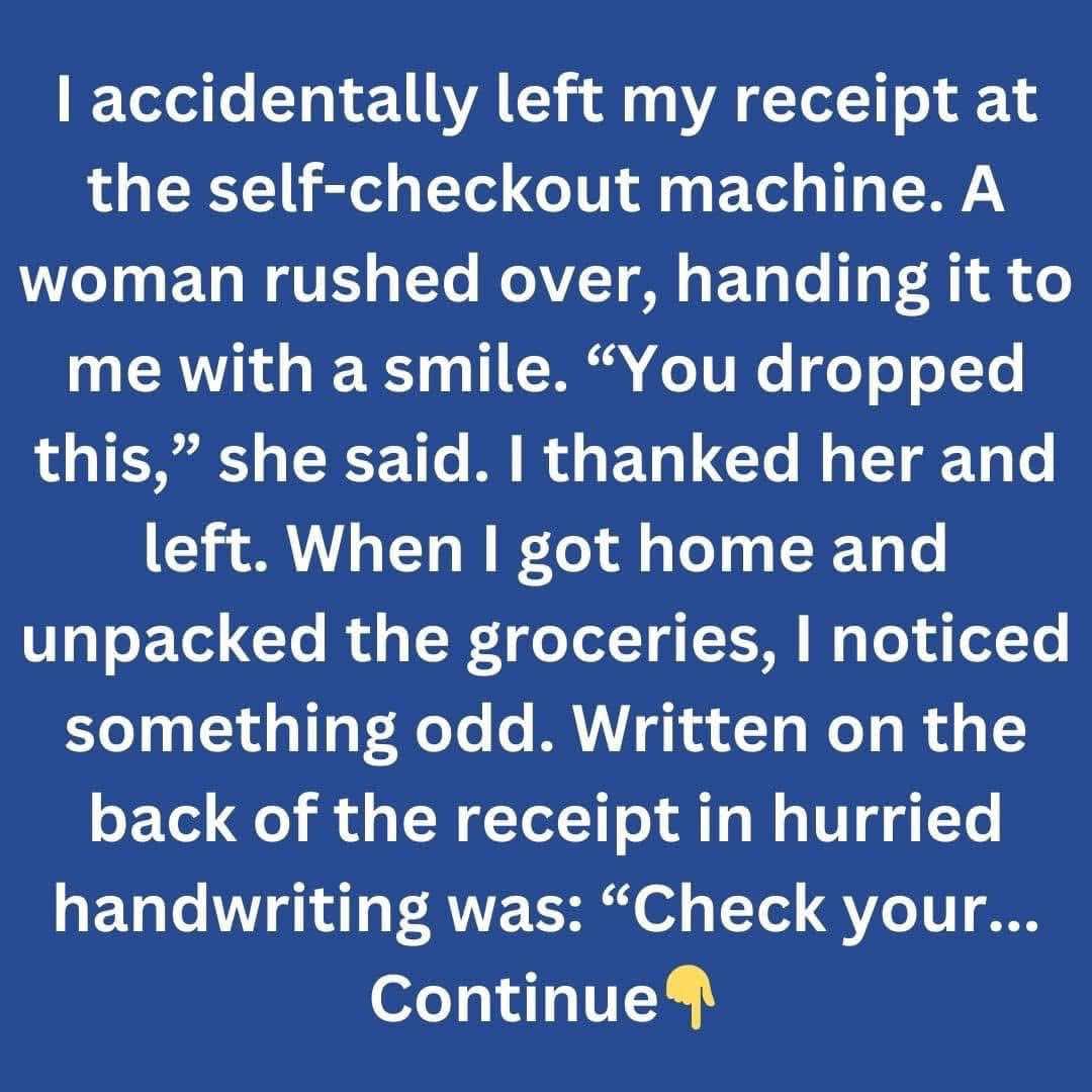 I accidentally left my receipt at the self-checkout machine. A woman rushed over, handing it to me with a smile. “You dropped this,” she said. I thanked…
